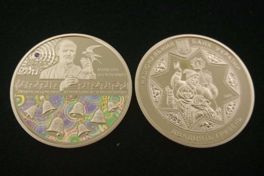 Це не перша новинка від Нацбанку цьогоріч. 5 січня побачили світ дві монети, присвячені різдвяному «Щедрику» Миколи Леонтовича (Carol of the Bells). А саме – столітньому ювілею з дня виконання цієї всесвітньо відомої композиції. Монети номіналом 5 та 20 гривень. Остання – срібна, коштує 1370 гривень.