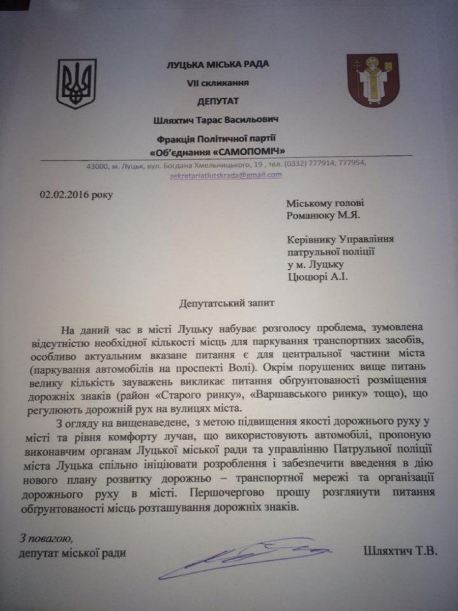 Депутат міськради Микола Собуцький оприлюднив у Facebook відповідний депутатський запит свого колеги, Тараса Шляхтича, і закликав долучатися до такої ініціативи, проінформував Ройон.Луцьк.