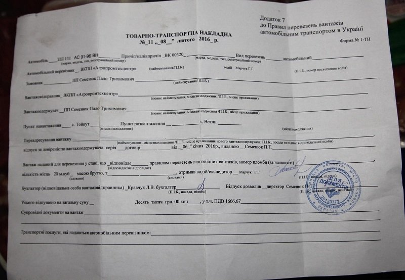 Машину з лісом доставили на штрафмайданчик райвідділку до з’ясування всіх обставин. Згідно з пред’явленими документами, деревина належить підприємцю Семенюку П.Т.
