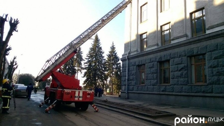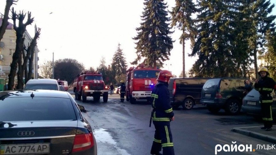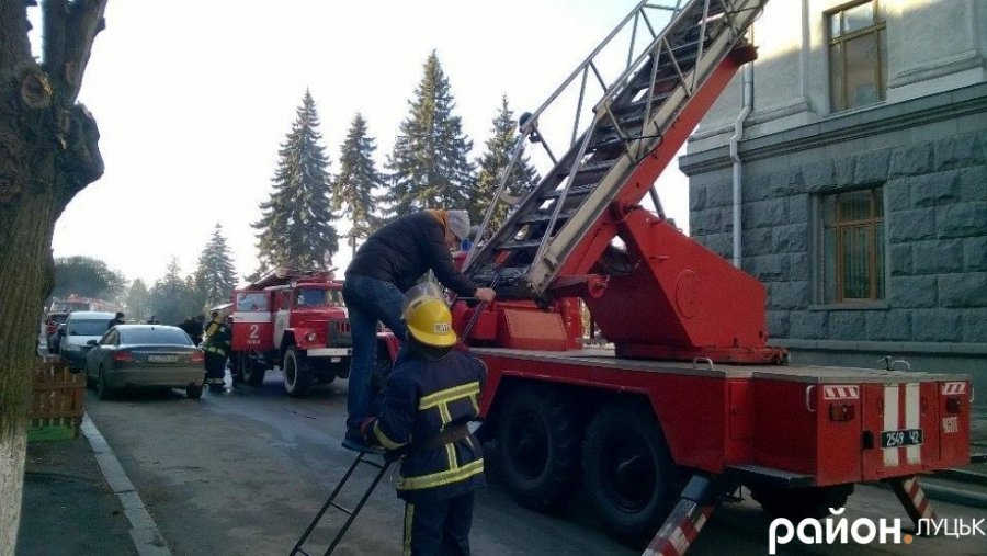 За легендою, пожежа відбувається в актовому залі. Біля закладу уже зібралося чимало лучан, які не розуміють, у чому справа.