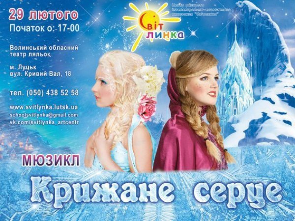 В останній день зими, 29 лютого 2016 на сцені лялькового театру о 17:00 годині відбудеться прем'єра мюзиклу "Крижане серце".