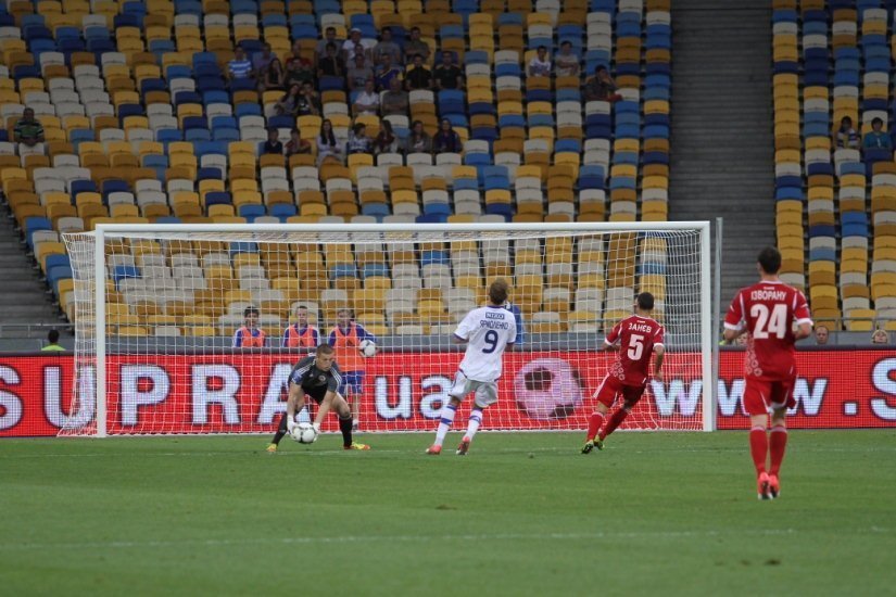 «Волинь» від початку вирішила грати «другим номером», віддавши господарям ініціативу. «Динамівці» на старті обстріляли володіння Літовченка зусиллями Велозу (зі штрафного) та Ідейе і взагалі почувалися доволі вільно на половині поля «Волині». У лучан запам’яталися два офсайди Суботіча – Даніель намагався увесь матч грати на лінії із гренадерськими захисниками господарів. Було видно, що кияни побоювалися таки «Волинь», бо при перших натяках на ешелоновані атаки лучан, гострота біля воріт Літовченка зникла. Аж тут Дуду із Кранчаром провели нехитру комбінацію на правому фланзі захисту «волинян» і хорват з лінії штрафного розстріляв дальній нижній кут воріт Літовченка – 0:1. Сергій, який в цілому непогано грав до цього у воротах, допомогти команді не міг.