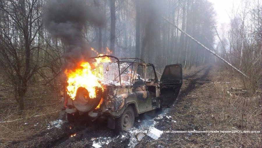 Миттєво спалахнувши, автівка разом з товаром згоріла. Попередньо встановлено, що в ній було приблизно 20 ящиків сигарет «Мінськ» без акцизних марок білоруського виробництва, які, ймовірно, незаконним шляхом порушники планували переправити з України в Польщу. Також за номерними знаками встановлено, що автомобіль належав жителю Волинської області.