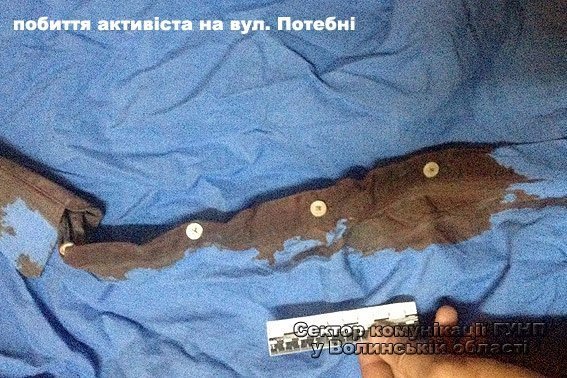 Цього ж вечора, близько 20 години, на вулиці Шевченка в Луцьку, поблизу спорткомплексу, двоє невідомих чоловіків напали на 32-річного активіста громадської організації «Самооборона Волині», помічника одного із народних депутатів України. Про інцидент поліцію повідомив сам постраждалий.