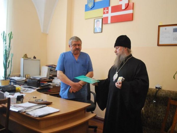 Вікарний єпископ Волинської єпархії Нафанаїл передав військовому госпіталю, що в Луцьку, 20 тис. грн і помолився разом з військовими.
