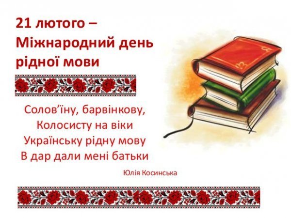 21 лютого – Міжнародний день рідної мови, проголошений Генеральною конференцією ЮНЕСКО у листопаді 1999 року.