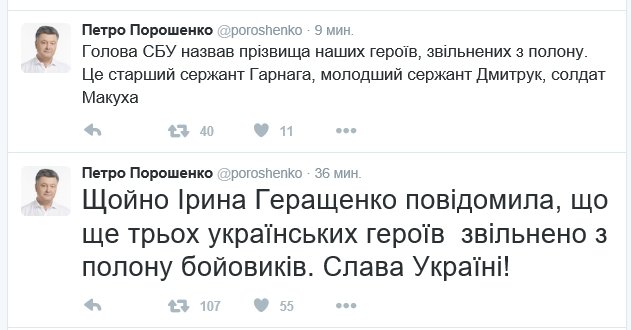 Обмін відбувся поблизу селища Оленівка у Донецькій області. Звільнили військовослужбовеця 40-го мотопіхотного батальону Олександра Макуха, Сергія Гарнагу – військовослужбовця 25-го батальону, Сергія Дмитрука.
