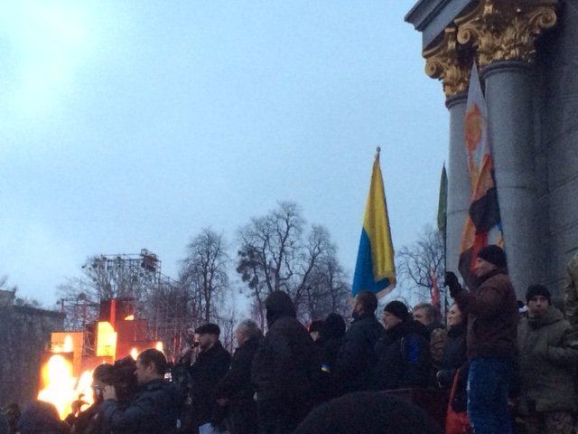 Разом з тим, Еспресо.TV повідомляє, що активісти "Революційних правих сил (РПС) вимагають звільнення політичних ув'язнених, визнання недійсними мінських угод і відставки уряду.