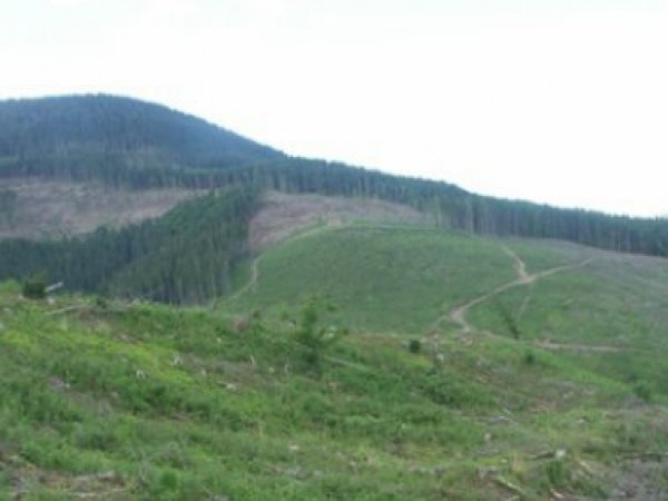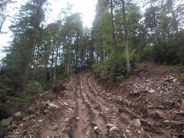 Дорога до гори встелена понищеною природою і пеньками від зрубаних дерев.