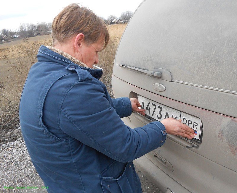 Водій на ім'я Сергій перетнув кордон, змінює номерний знак на машині - українські на ДНРівські.