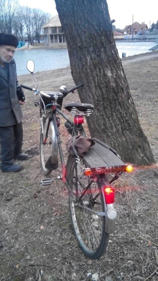 До слова, нещодавно дідусь зі своїм велосипедом потрапив у поле зору патрульних поліцейських. Тоді вони відзначили, що такий транспортний засіб неможливо не помітити, адже він був обладнаний показниками поворотів, сигналами та всіма необхідними деталями.