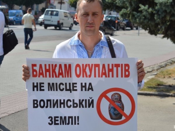 Представник громадської організації УНСО Волинь Сергій Пашинський зазначив, що функціонування російських банків на території Луцька неприпустиме.