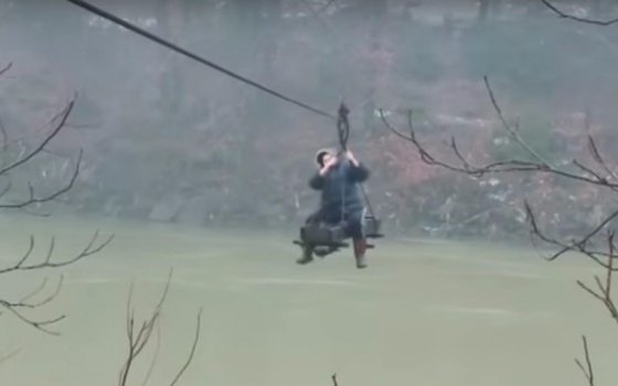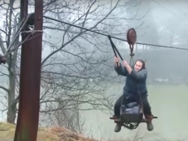 Півтисячі жителів гірського села щодня... літають над стрімкою рікою разом з меблями і худобою.
