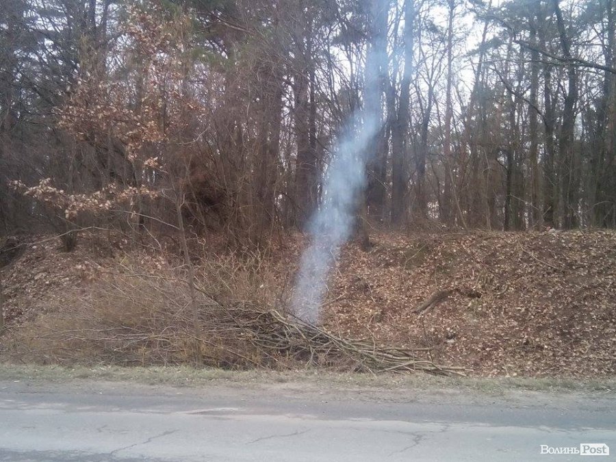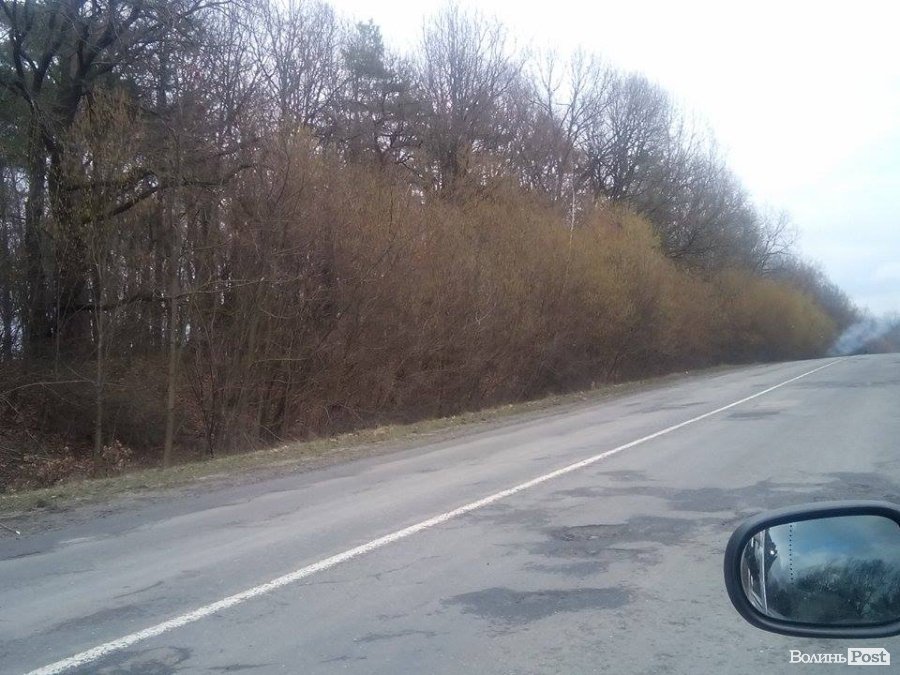 Вже декілька діб на трасі «Луцьк-Володимир-Волинський» розчищають узбіччя та відразу спалюють гілля.