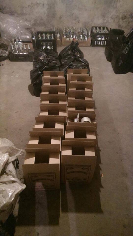 У зловмисників вилучили 2652 пляшки алкогольних напоїв, 410 літрів рідини «із запахом спирту», 570 пачок цигарок, 400 корків до скляних пляшок, понад 120 пляшок порожньої скляної тари, обладнання для виготовлення і розливу алкогольних напоїв: насос, шланги, бочки.