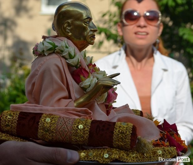 Початок церемонії - виносять фігуруку Шріла Прабхупада, засновника Міжнародного товариства свідомості Крішни