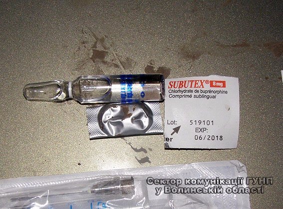 У 28-річного волинянина на вулиці в селі Воля Ковельського району поліцейські вилучили два шприци, скляну ампулу із прозорою рідиною та два згортки з таблетками білого кольору з надписом «Субітекс».