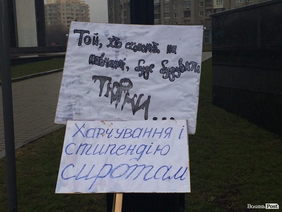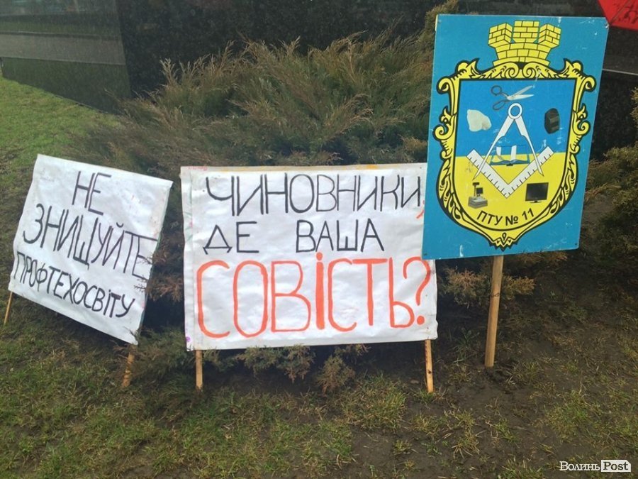 Тож працівники ПТУ Ковеля, Нововолинська, Володимира-Волинського прийшли під стіни обласної ради зі своїми претензіями. Вони принесли плакати та банери із написами: «Ми голодні!», «Буде хліб?», «Врятуйте ПТУ» тощо.