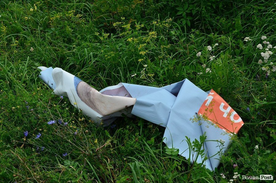 У Луцьку на вулиці Набережній плакати з білбордів валяються на проїжджій частині та тротуарах - вітер порозносив шматки паперу далеко від самих білбордів 15 серпня.