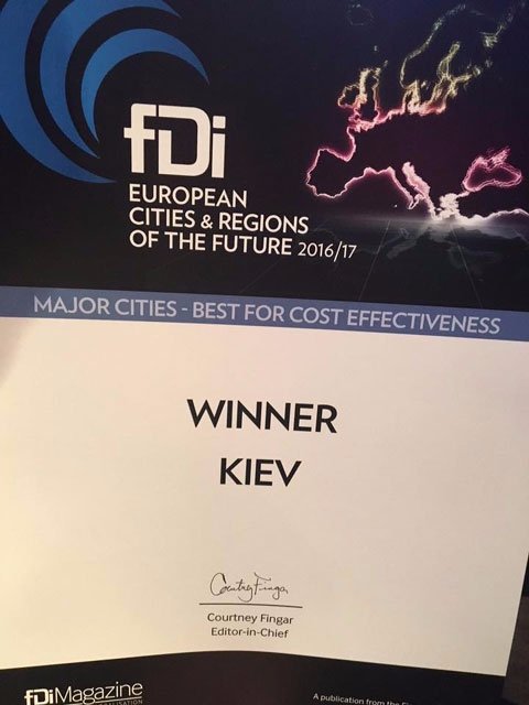 Київ визнали «найкращим європейським містом майбутнього з точки зору рентабельності» у конкурсі видання Foreign Direct Investment Magazine «Європейські міста і регіони майбутнього 2016-2017».