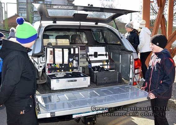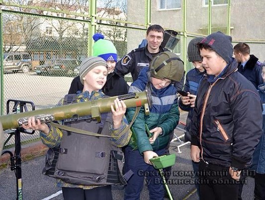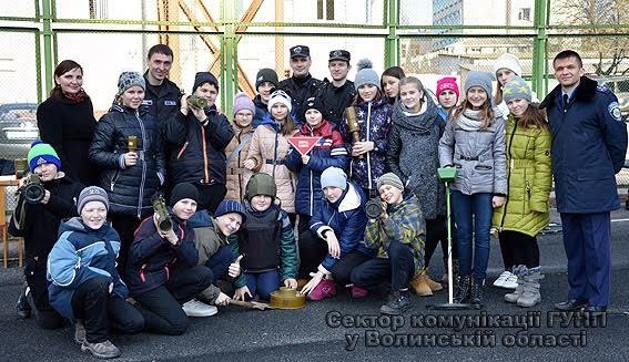 Працівники вибухотехнічного сектору волинської поліції на чолі із керівником сектору Ігорем Заболотним представили школярам експозицію макетів зброї, вибухівки, пристроїв для знищення вибухових речовин і металошукачі. Школярі охоче спробували відшукати металічні предмети за допомогою металошукача. Залюбки разом із вибухотехніками фотографувалися в амуніції й з макетами зброї.