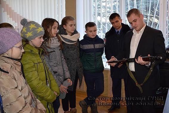 Розпочалася екскурсія для школярів із серця поліції – чергової частини волинської поліції. Її провів керівник цього підрозділу Вадим Дяк. Із особливою цікавістю учні слухали про електронні браслети та принцип відслідкування осіб, до яких суд ухвалив застосувати браслети. Також дітям продемонстрували спецзасоби, зброю та надали можливість приміряти бронежилети і каски. Після цього, школярам показали колцентр екстреної лінії «102». Учням розповіли, що усі дзвінки із номеру 102 потрапляють саме до цієї диспетчерської служби. Оператори приймають їх та скеровують відповідні наряди поліції на місце злочинів та інших події.