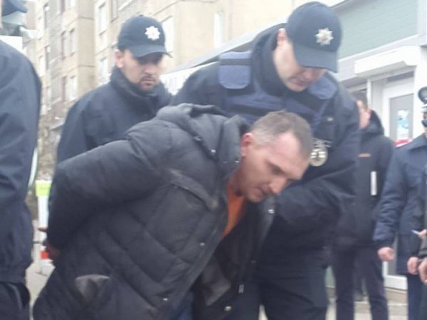 Спочатку з ним спілкувався лише працівник охорони банку, який виманив дебошира на вулицю, де патрульні одягли на чоловіка кайданки.