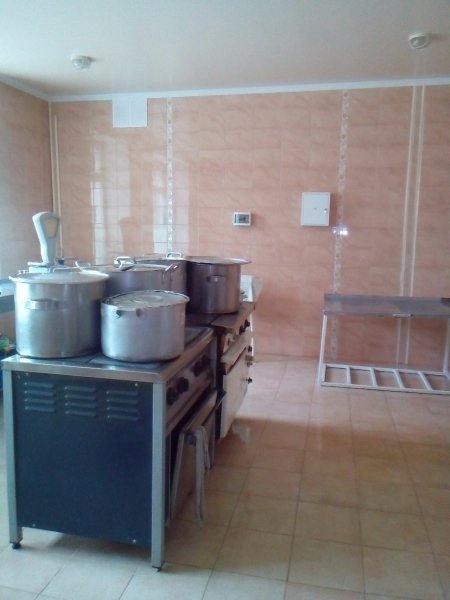 У ході проведення ремонтних робіт покладено облицювальну плитку на стінах та підлозі, зроблено стелю з гіпсокартону, замінено двоє дверей, встановлено вікно для роздачі їжі. Наразі завершуються роботи по заміні вентиляції в харчоблоці на суму 36 тисяч 400 гривень.
