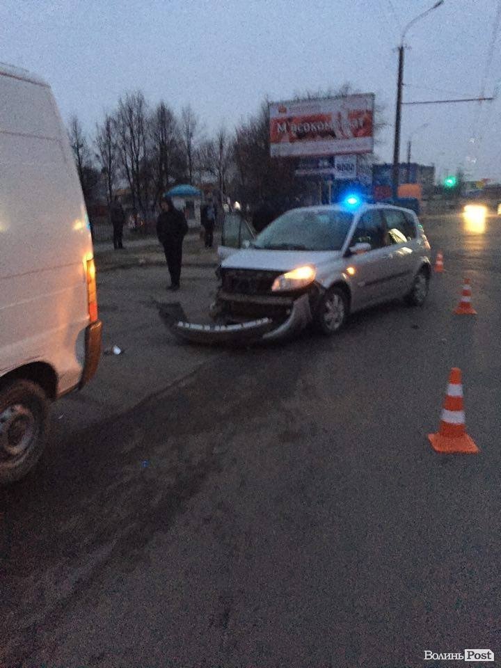 На вулиці Конякіна у Луцьку, близбко 18:30, поруч з автостанцією трапилось ДТП. Водій Renault Scenic, перелаштовуючись з лівої смуги на праву, не переконався в безпечності цього маневру і зіткнувся з білим Фіатом.