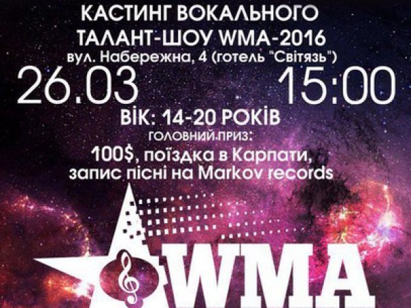 У Луцьку 26 березня 2016 року о 15.00 год в приміщенні готелю «Світязь» (вул. Набережна, 4) відбудеться кастинг на наймасштабніший у місті вокальний конкурс «Weplus Music Awards», - повідомляють організатори.
