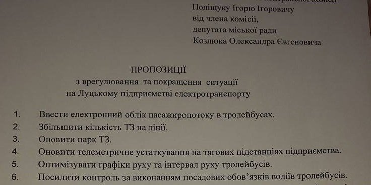Конкретні пропозиції з врегулювання та покращення ситуації на Луцькому підприємстві електротранспорту вніс Олександр Козлюк, начальник управління розвитку підприємництва та реклами Луцької міської ради (БПП «Солідарність»).