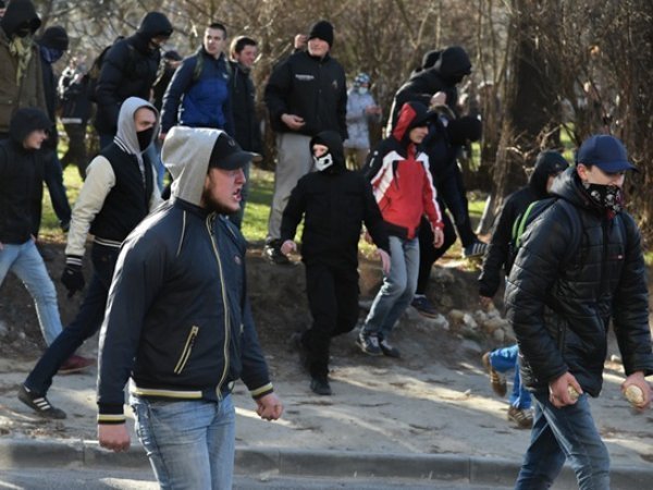 Коли учасники ЛГБТ-фестивалю почали виходити з будівлі, зібрані під будівлею готелю радикали почали кидати каміння і вибухові пакети їм услід.