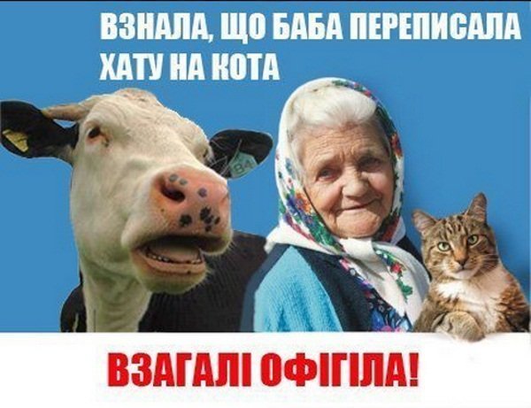 Інтернет-дотепники продовжують змагатися в оригінальності на переробку уже знаменитого сюжету «Взнала, що онук голосував за регіони - переписала хату на кота».
