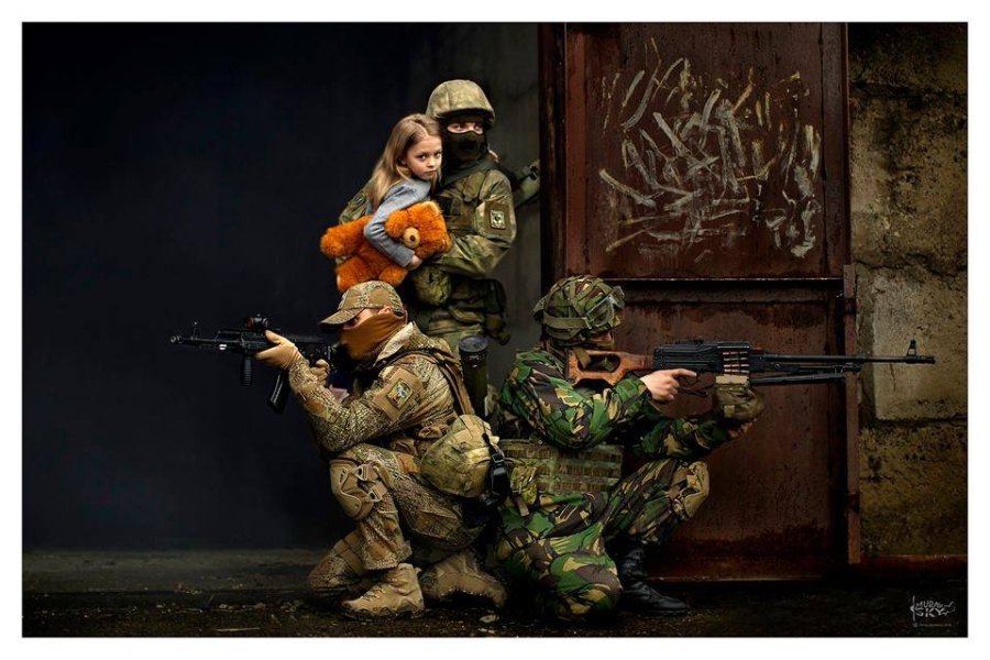 На знімках два покоління – мужні бійці і маленькі діти, яких об’єднала війна.