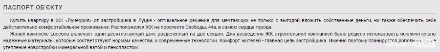 В себе на сайті компанія забудовник публікує інформацію про те, що будинок буде зданий в кінці 2016 року та вже пропонує покупцям квартири на 10 поверхах. Яскравий сайт-візитка забудови, з російськомовним наповненням, розповідає лучанам про переваги придбання квартир у самому серці міста на «проспекте Свободы». Запевняє що головна ціль забудовника – комфорт майбутніх жителів.