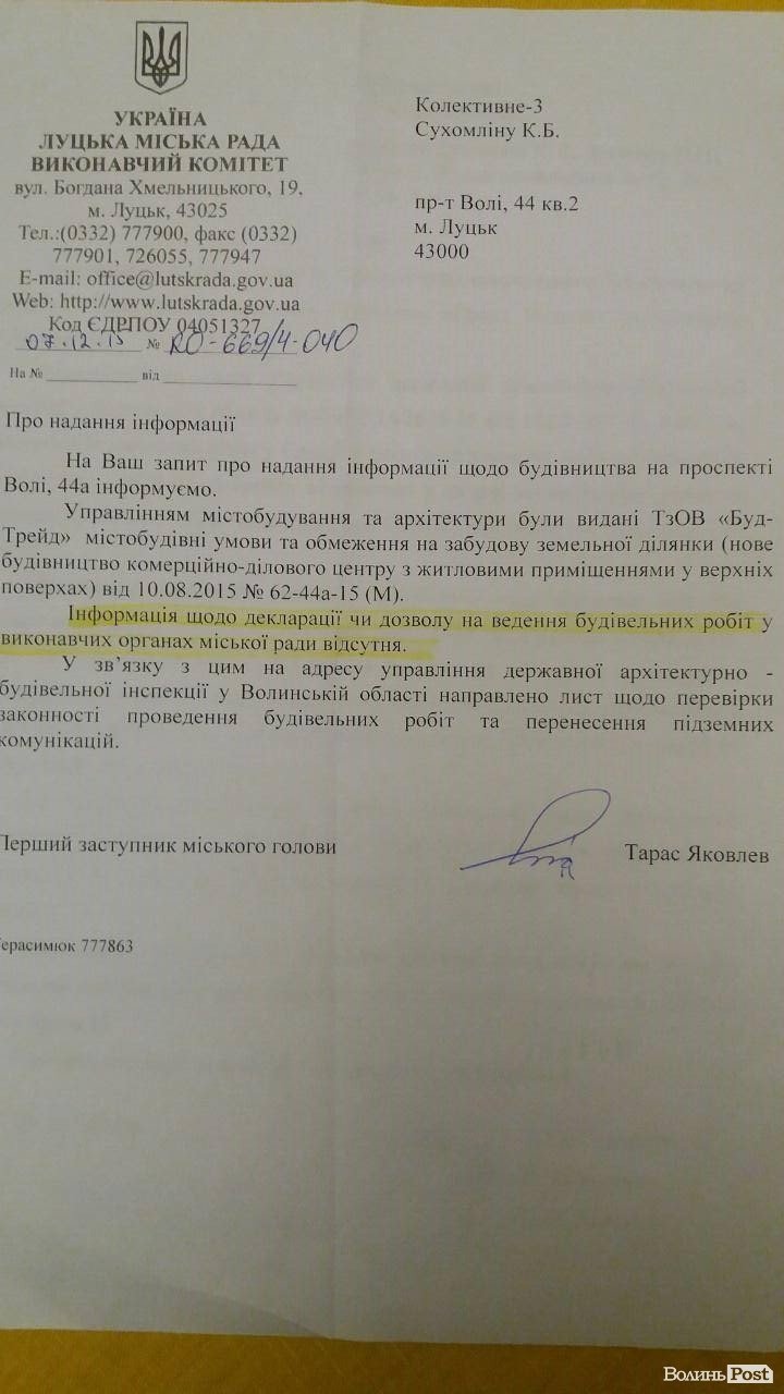 Резонанс навколо сумнівного будівництва з ознаками порушень на проспекті Волі, 44а набирає обертів.