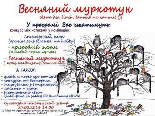 "Отож, володимирчани, не гайте часу і вже приступайте до підготовки своїх домашніх улюбленців до «Весняного муркотуна». Шийте та прасуйте одяг, приводьте до пуття їхнє хутро і 27 березня о 14.00 – ласкаво просимо на свято!" - йдеться на сайті.
