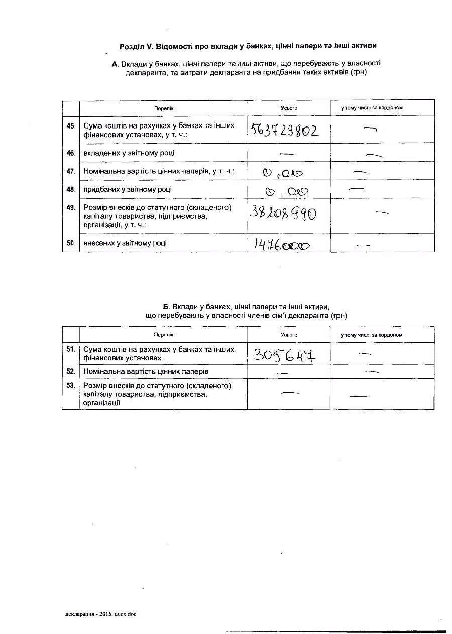 На банківських рахунках глави держави є 563,7 млн. грн. Крім того, було внесено в статутні капітали компаній 38,2 млн грн (з них, в минулому році - 1,5 млн).