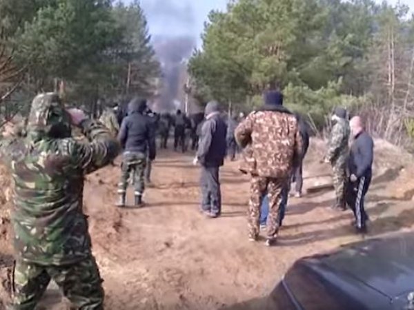 Майже тисяча осіб у балаклавах і камуфльованому одязі, озброєні дерев’яними битами, камінням, палицями заблокували дорогу поваленими деревами та чинили опір працівникам правоохоронних органів.