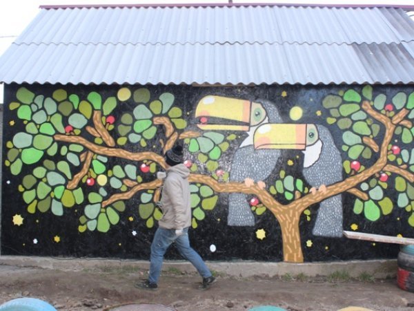 Утім, головний сюрприз для місцевих мешканців – мистецький. Три стіни у дворі майстри графіті з «And Art Studio» розмалювали яскравими малюнками. Тепер замість похмурої цегли мешканці будинку дивитимуться на дерева, зірки та екзотичних птахів.