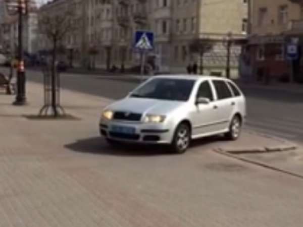 На відео чітко видно, що автомобіль стоїть на тротуарі поблизу головного корпусу Східноєвропейського національного університету імені Лесі України.