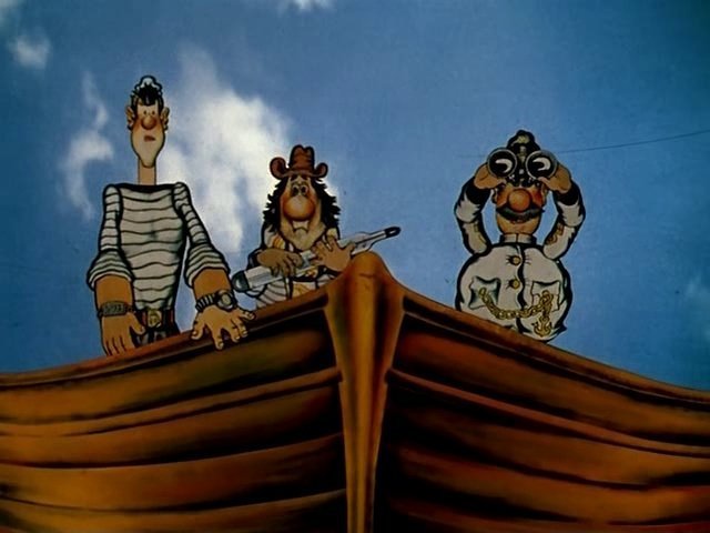 4. Острів скарбів (1986) - двосерійний мультиплікаційний фільм із вставками кінематографічних музичних кліпів за мотивом однойменного роману Р.Л.Стівенсона. Режисер мультфільму - Давид Черкаський, сценарист - Юрій Аліков.