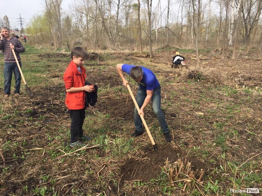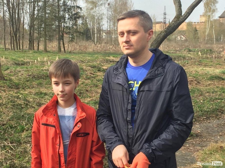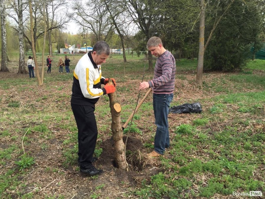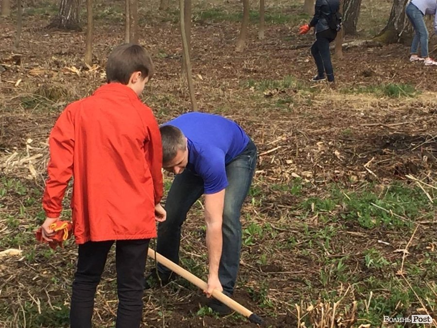 Керівник найбільшої фінансової установи на Волині разом із сином Северином та своїми заступниками посадили в парку декілька десятків дерев.
