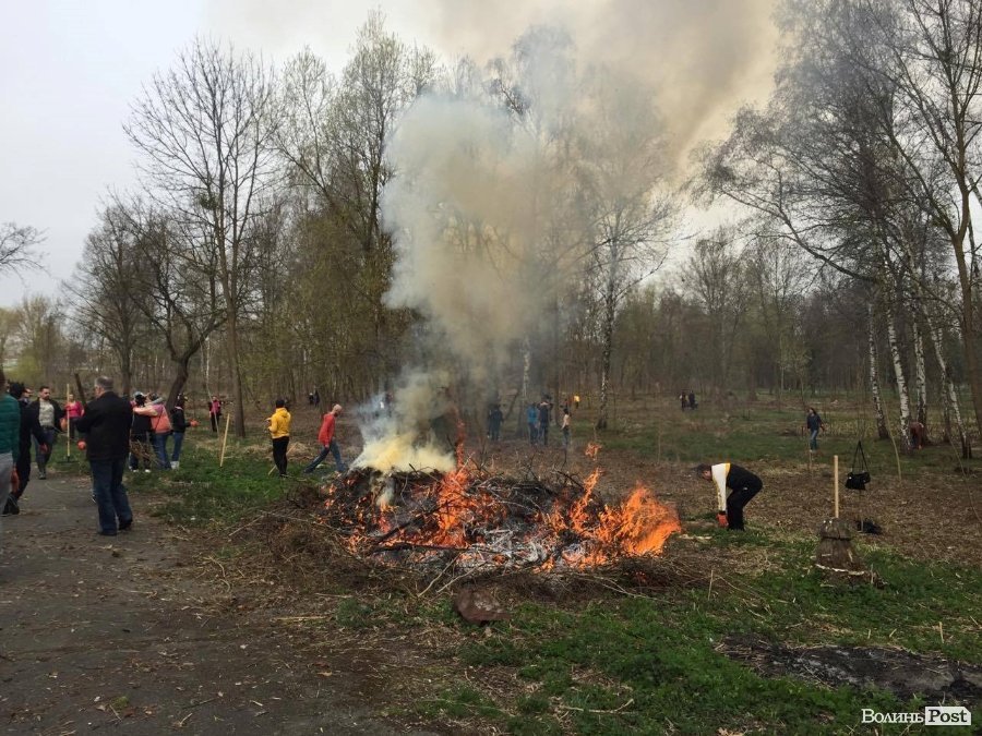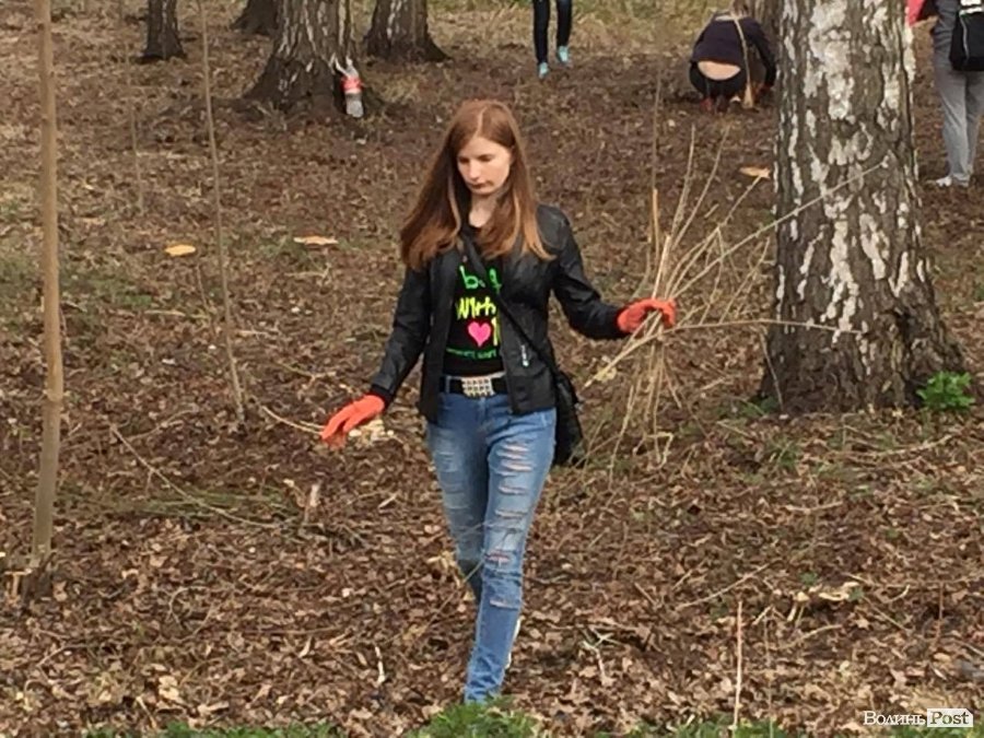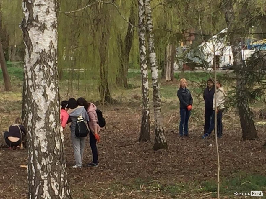 У Луцьку працівники ПриватБанку прибирали і садили дерева в парку ім. Лесі Українки. ФОТО
