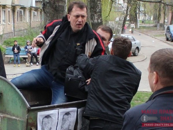 На це екс-свободівець відповідав відмовою. Почалася штовханина, під час якої в ситуацію втрутився охоронець Кочубея, завдавши кілька ударів “свободівцям”.