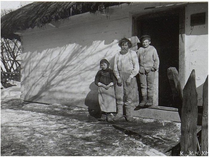 А це звичайна сільська родина у буденному робочому вбранні, яка аж ніяк не готувалася до того, що її зазнимкують.