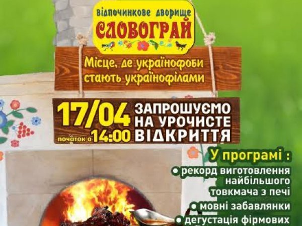 До слова, унікальною "фішкою" "Словограю" є автентична українська піч, в якій шеф-ґаздиня готує оригінальні українські страви з поліської, галицької, гуцульської, полтавської та інших традиційних кухонь України. Гарячі страви гостям свята та всім відвідувачам подаватимуть прямо із печі до столу.