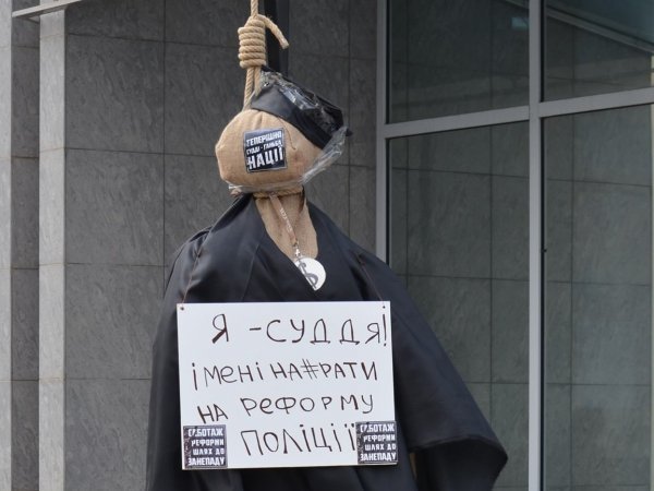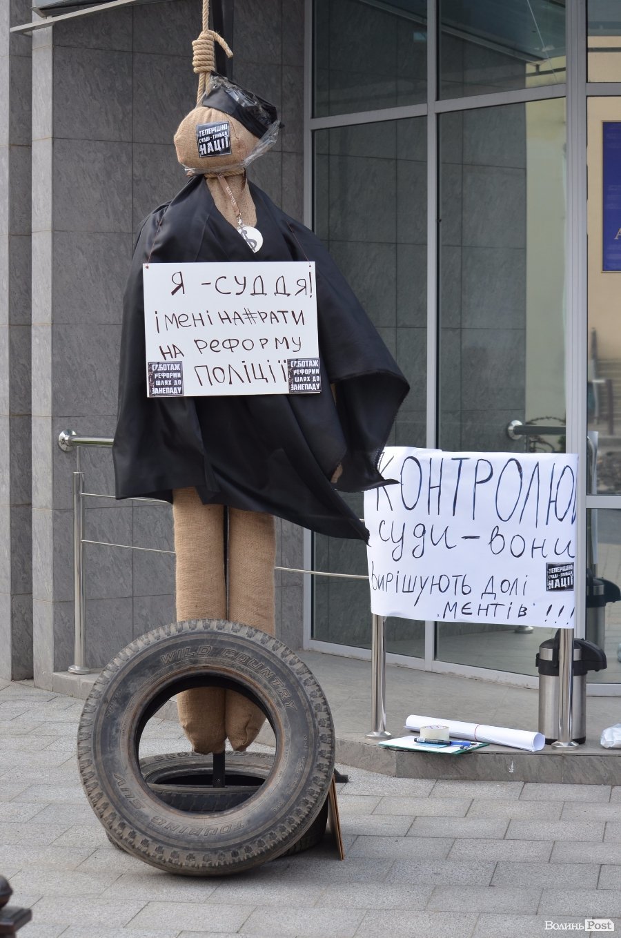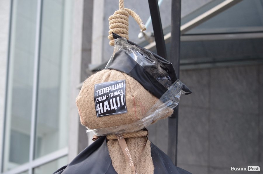 Біля Волинського адмінсуду повісили «суддю». ФОТО