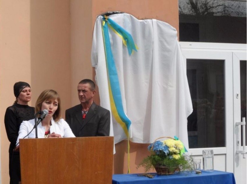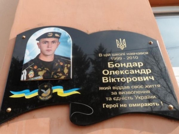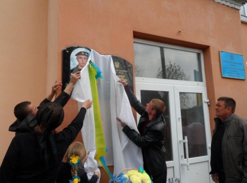 Меморіальну дошку виготовив за власні кошти хрещений батько загиблого, депутат Верховної Ради України Михайло Бондар.
