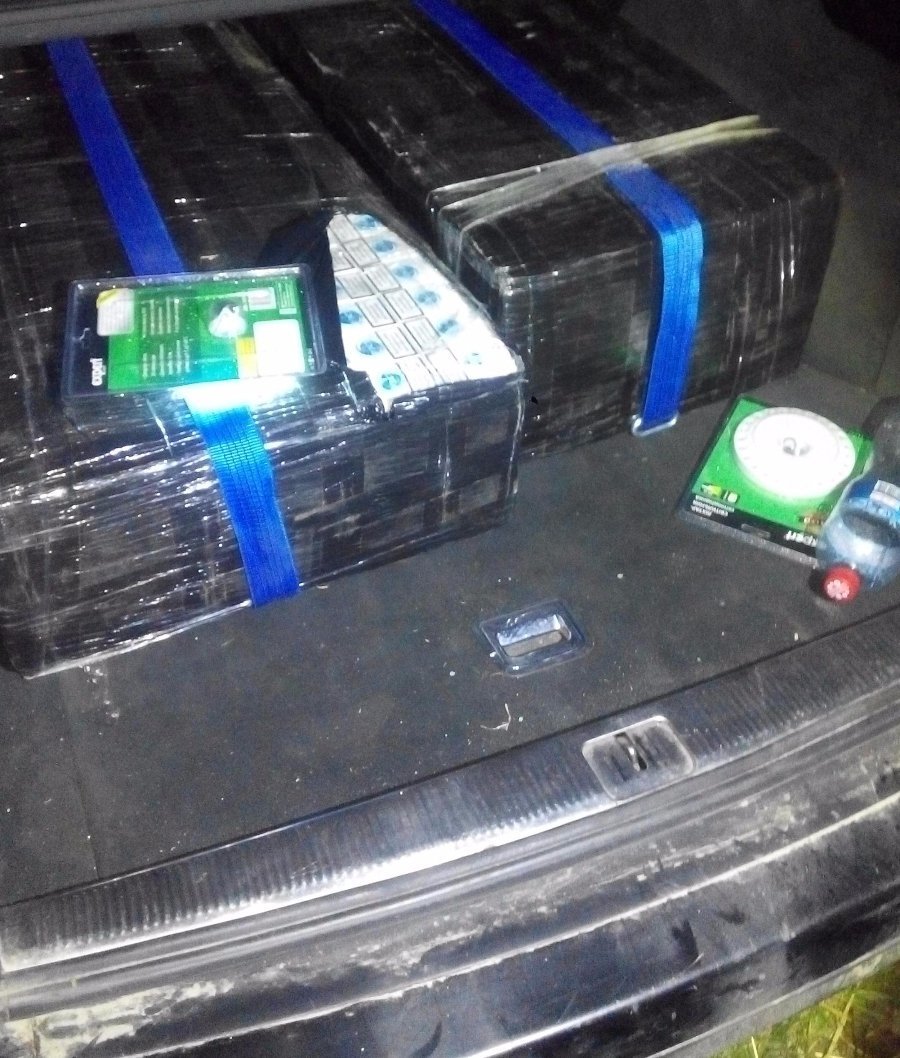 В ході огляду в транспортному засобі міжвідомча група виявила GPS-навігатори, приладдя для кріплення коробів на каркасі мотодельтоплану, парашут для безпечного скидання вантажу, 7 ящиків цигарок «Фест» без акцизних марок, автономні світлодіодні лампи для позначення місця посадки, каністри з бензином та радіостанцію.